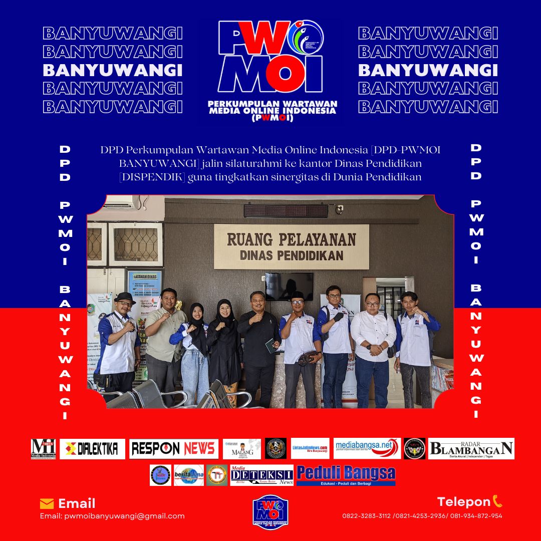 Banyuwangi Jawa Timur Dalam upaya memperkuat sinergi dan meningkatkan kualitas pendidikan, DPD PWMOI Banyuwangi melakukan audiensi silaturahmi dengan Dinas Pendidikan Kabupaten Banyuwangi. Pertemuan yang berlangsung di Jalan Agus Salim Taman Baru Kecamatan Kota Kabupaten Banyuwangi 03 September 2024