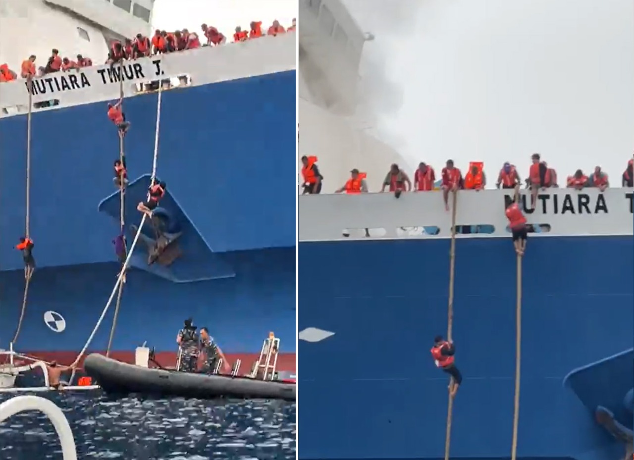 Evakuasi dramatis ratusan penumpang kapal laut yang terbakar itu berhasil diselamatkan ke Kapal Angkatan Laut dan sejumlah perahu nelayan. Sebanyak 7 orang dilaporkan mengalami luka-luka.