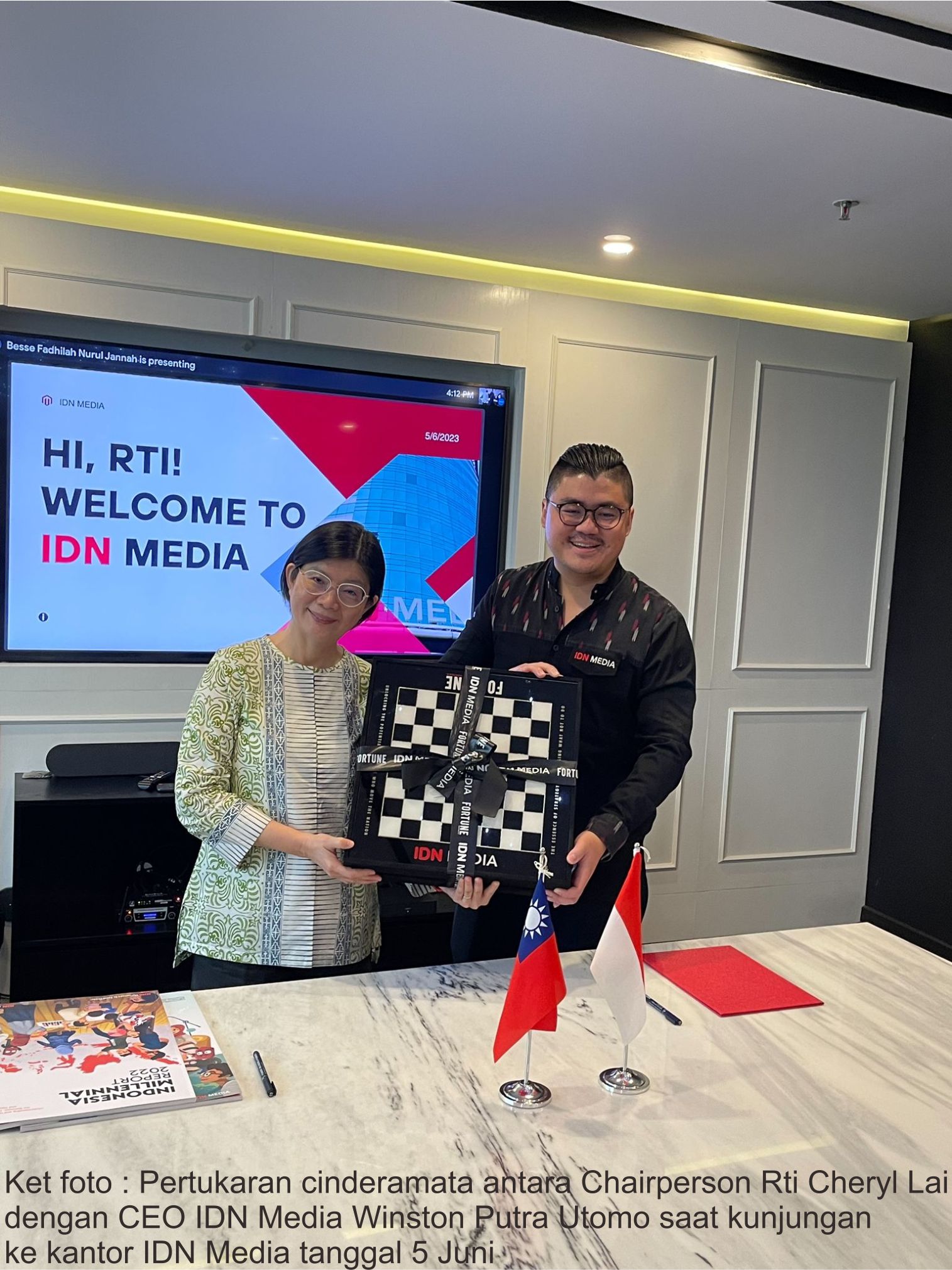 Chairperson Cheryl Lai mengatakan, “Saya sangat mengapresiasi apa yang telah dilakukan oleh IDN Media, dimana mampu mengelola berbagai platform bahkan hingga merambah ke bidang perfilman dan artis. Selain itu, terkait hal pendanaan, memang berbeda dengan Rti, karena Rti adalah media nirlaba milik pemerintah Taiwan di bawah Kementrian Kebudayaan, ada dukungan dana sebesar 80% dari kementrian, sementara 20% lagi harus diupayakan oleh Rti sendiri.”