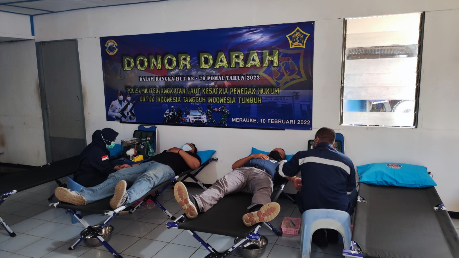 Merauke, potensinusantara.co.id-10 Februari 2022. TNI-AL. Dalam rangka menyambut Hari Ulang Tahun Polisi Militer TNI-AL (Pomal) ke-76, Pomal Lantamal XI Merauke menggelar kegiatan donor darah bekerja sama dengan PMI (Palang Merah Indonesia) Kabupaten Merauke, Kamis (10/02).