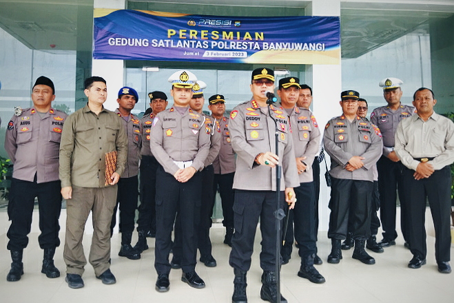 “Ini menambah gedung baru milik Polresta Banyuwangi. Harapannya, dengan kantor baru bisa meminimalisir konflik, sekaligus untuk silaturahmi,” kata Kapolresta Banyuwangi Kombes Pol. Deddy Foury Millewa disela peresmian Kantor Satlantas.