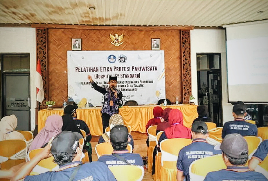 Banyuwangi, potensinusantara.co.id- Dalam upaya mempersiapkan dan meningkatkan kemampuan Sumber Daya Manusia (SDM) masyarakat desa yang berdaya saing, Politeknik Negeri Banyuwangi (Poliwangi) melalui Program Pemberdayaan Desa Tematik di Desa Tambong yang diketuai oleh Bapak Aditya Wiralatief Sanjaya, S.ST., M.ST dari Program Studi Manajemen Bisnis Pariwisata (MBP) menyelenggarakan Pelatihan Etika Profesi Pariwisata (Hospitality Standard) di Pendopo Kantor Desa Tambong, Kecamatan Kabat, Banyuwangi, Jawa Timur, pada Selasa (11/10/2022) lalu.