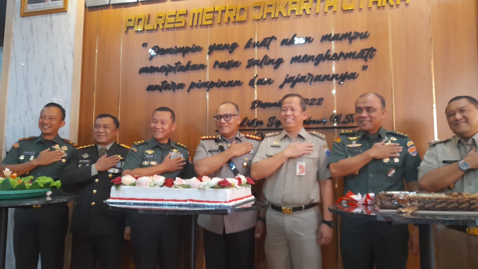 Dalam sambutannya Kapolres Metro Jakarta Utara Kombes Pol Gidion Arif Setyawan SIK, SH, M Hum, mengucapkan rasa syukur dan terimakasih serta rasa bangga kepada TNI – AD dan jajarannya yang telah hadir di Mapolres Metro Jakarta Utara dalam rangka turut memperingati HUT Bhayangkara ke 77, ini sebuah kehormatan luar biasa dimana Bapak-bapak Jenderal dari TNI – AD bisa hadir di Mapolres kami di Jakarta Utara, ungkap Kapolres.