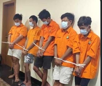 Dirreskrimum Polda Metro Jaya Kombes Pol Wira Satya menyampaikan kelima tersangka berinisial DA alias M (27), MR (25), AG alias T (30), NM (31) dan RY alias A alias T (20).