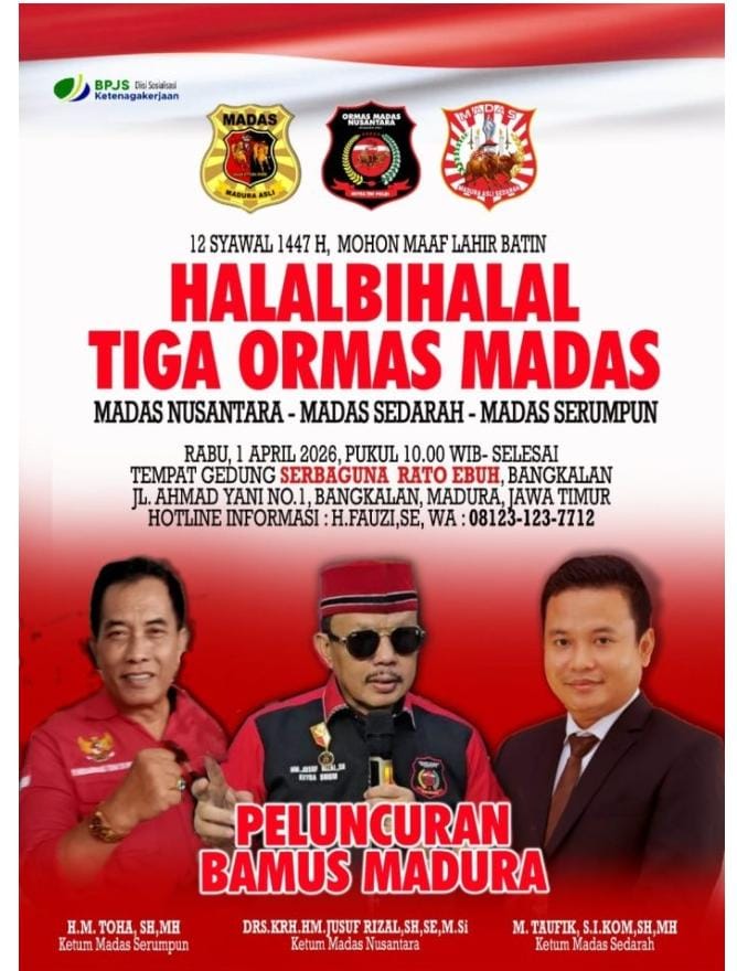BANGKALAN – Tiga ormas Madas yaitu Madas Nusantara, Madas Sedarah dan Madas Serumpun deklarasikan berdirinya Bamus (Badan Musyawarah) Madura guna turut mengawal investasi ke Madura dalam mendorong pembangunan Pulau Madura.