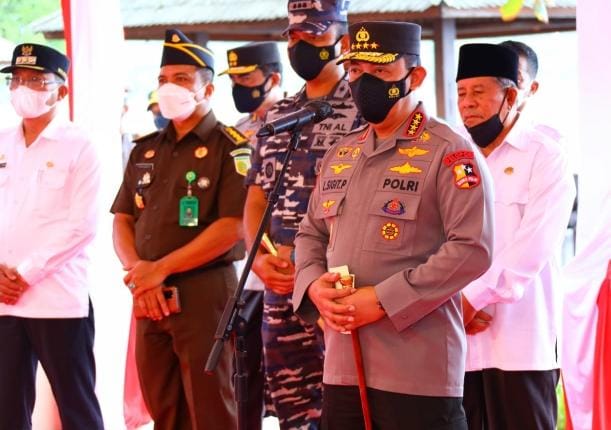 MALUKU – potensinusantara.co.id – Kapolri Jenderal Listyo Sigit Prabowo meninjau akselerasi percepatan vaksinasi Covid-19 yang digelar di 34 Provinsi Indonesia dengan menghadiri secara langsung di Pantai Sulamadaha, Kota Ternate, Maluku Utara, Jumat (14/01).