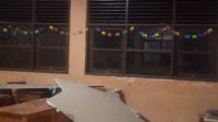 Berikutnya untuk kerusakan fasilitas umum yang terdata sementara meliputi Sekolah Dasar Negeri Kutamaneuh 2, Kecamatan Tegalwaru dan gedung aula serbaguna Kecamatan Pangkalan di Kabupaten Karawang, Jawa Barat. Berdasarkan laporan visual hasil kaji cepat menunjukkan langit-langit atau plafon jebol mengenai beberapa meja di salah satu ruang kelas SDN Kutamaneuh 2. Di samping itu, kerusakan juga terlihat di bagian dinding cungkup atap ruang kelas. Serpihan puing dinding itu jatuh dan berserakan ke tanah.