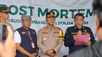 Banyuwangi, potensinusantara.co.id – Polresta Banyuwangi bersama Tim Gabungan dari DVI Pusdokkes Polri, Biddokkes Polda Jatim, Sidokkes Polresta Banyuwangi, RSUD Blambangan, dan Unit Inafis kembali mengungkap identitas dua jenazah korban tenggelamnya KMP Tunu Pratama Jaya. Proses identifikasi diumumkan melalui konferensi pers pada Selasa (29/7/2025), dipimpin oleh Wakapolresta Banyuwangi AKBP Teguh Priyo Wasono, mewakili Kapolresta Kombes Pol. Rama Samtama Putra.S.I.K., M.Si., M.H.