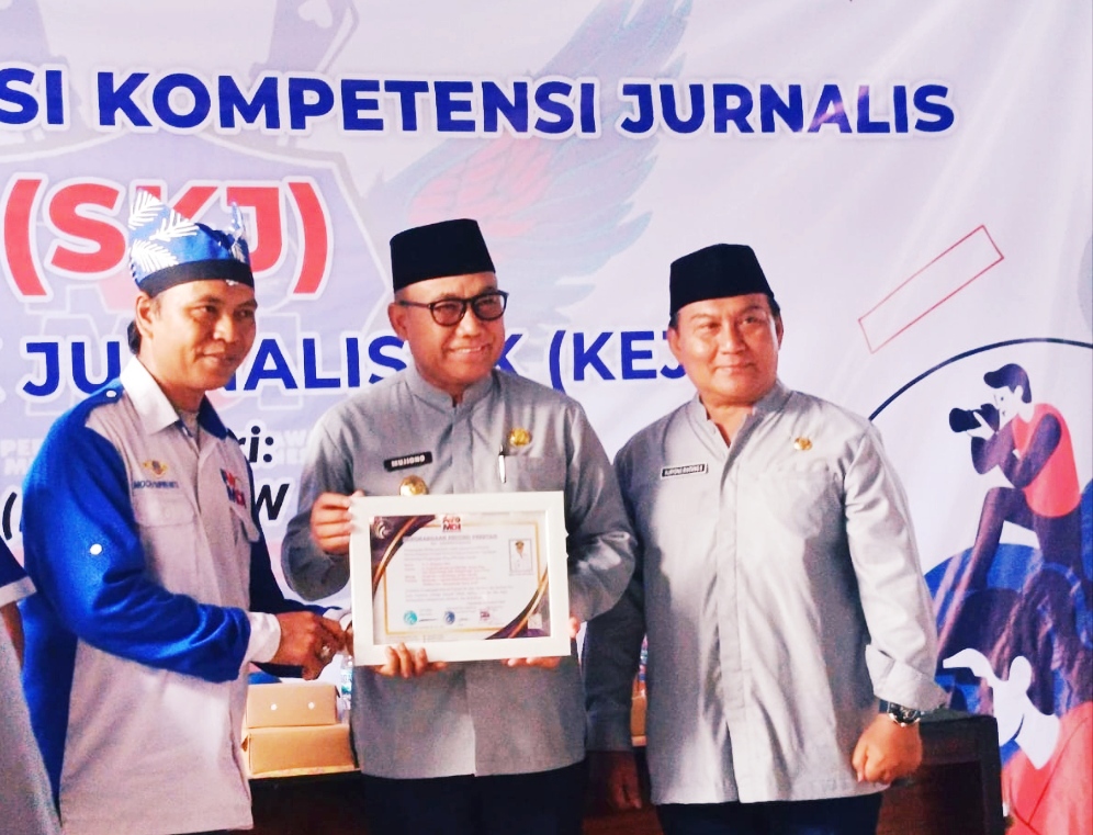 Banyuwangi Jawa Timur, potensinusantara.co.id – Wakil Bupati Banyuwangi, Ir. Haji Mujiono S.H., M.Si, menyatakan dukungan penuh terhadap kegiatan sertifikasi kompetensi jurnalis yang diselenggarakan oleh Dewan Pimpinan Daerah Perkumpulan Wartawan Media Online Indonesia (DPD PWMOI) Banyuwangi. Kegiatan ini berkolaborasi dengan DPW PWMOI Daerah Istimewa Yogyakarta (DIY) dengan tujuan meningkatkan profesionalisme jurnalis di wilayah Banyuwangi.